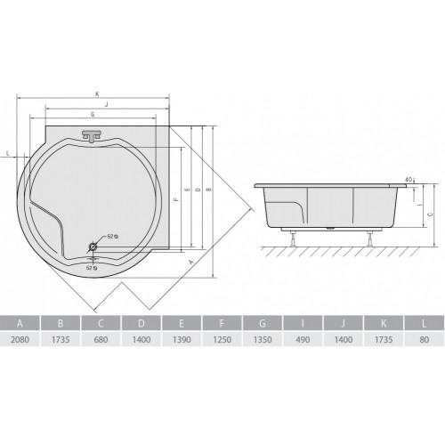 Акриловая ванна ALPEN Royal Corner 173