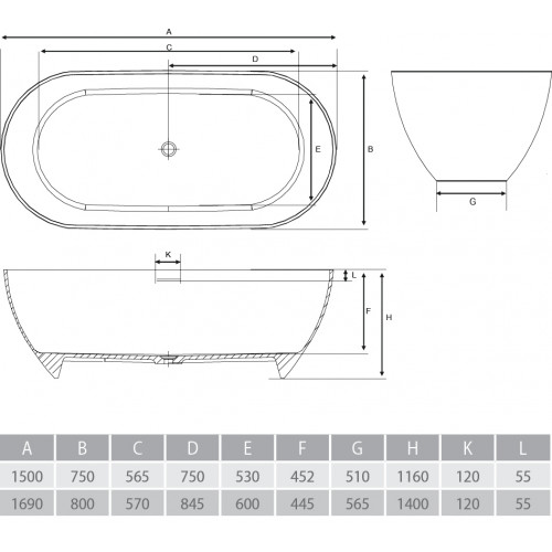 Ванна из литого мрамора ALPEN Palermo 150